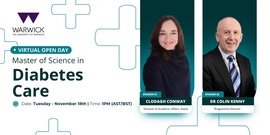 We invite you to join this free live webinar to hear details of our next enrollment (commencing the 26th of January) of our Online Master of Science in Diabetes Care, accredited by the University of Warwick.