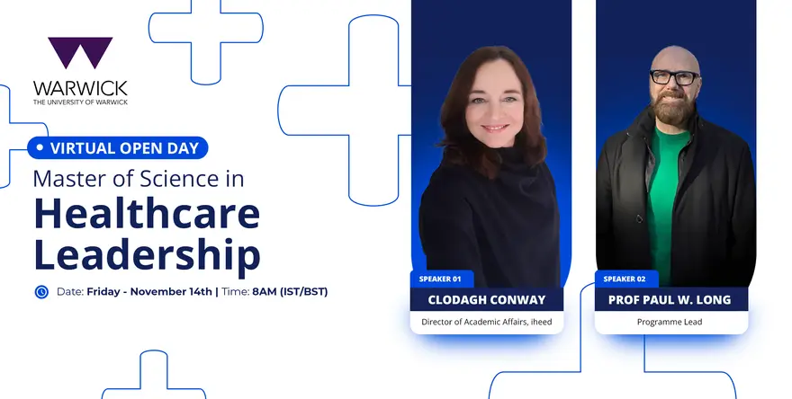 We invite you to join this free live webinar to hear details of our next enrollment (commencing the 26th of January) of our Online Master of Science in Healthcare Leadership, accredited by the University of Warwick.