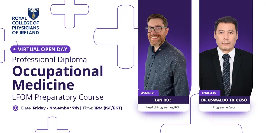We invite you to join this free live webinar to hear details of our next enrollment (commencing the 24th of November) of our Online Professional Diploma in Occupational Medicine LFOM Preparatory Course accredited by the Royal College of Physicians of Ireland